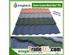 With good antiseptic Al-zinc steel as base plate, high weather resistance acrylic resin as adhesive, and colored basalt stone chips as surface, Kingbeck stone coated metal roof tile has become the main choice of international roof system.
